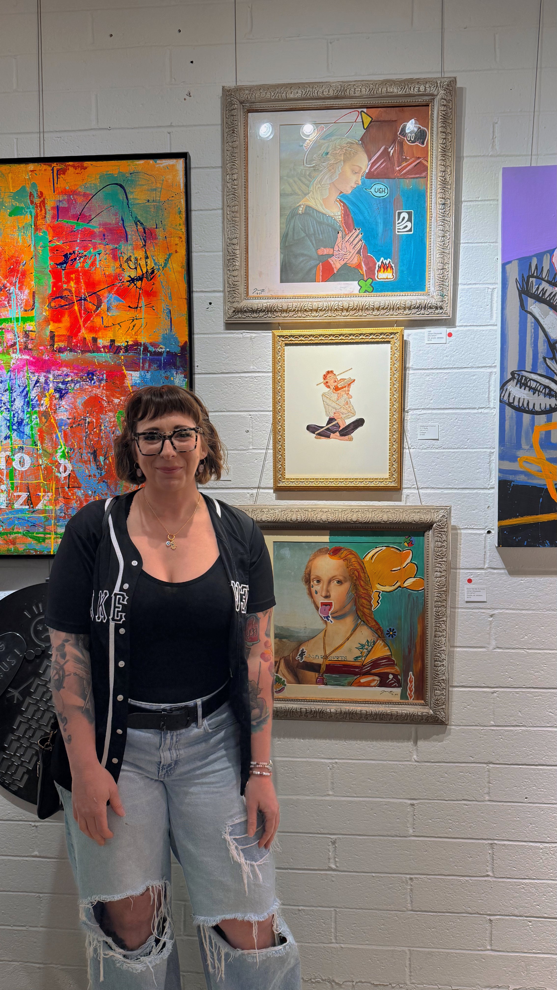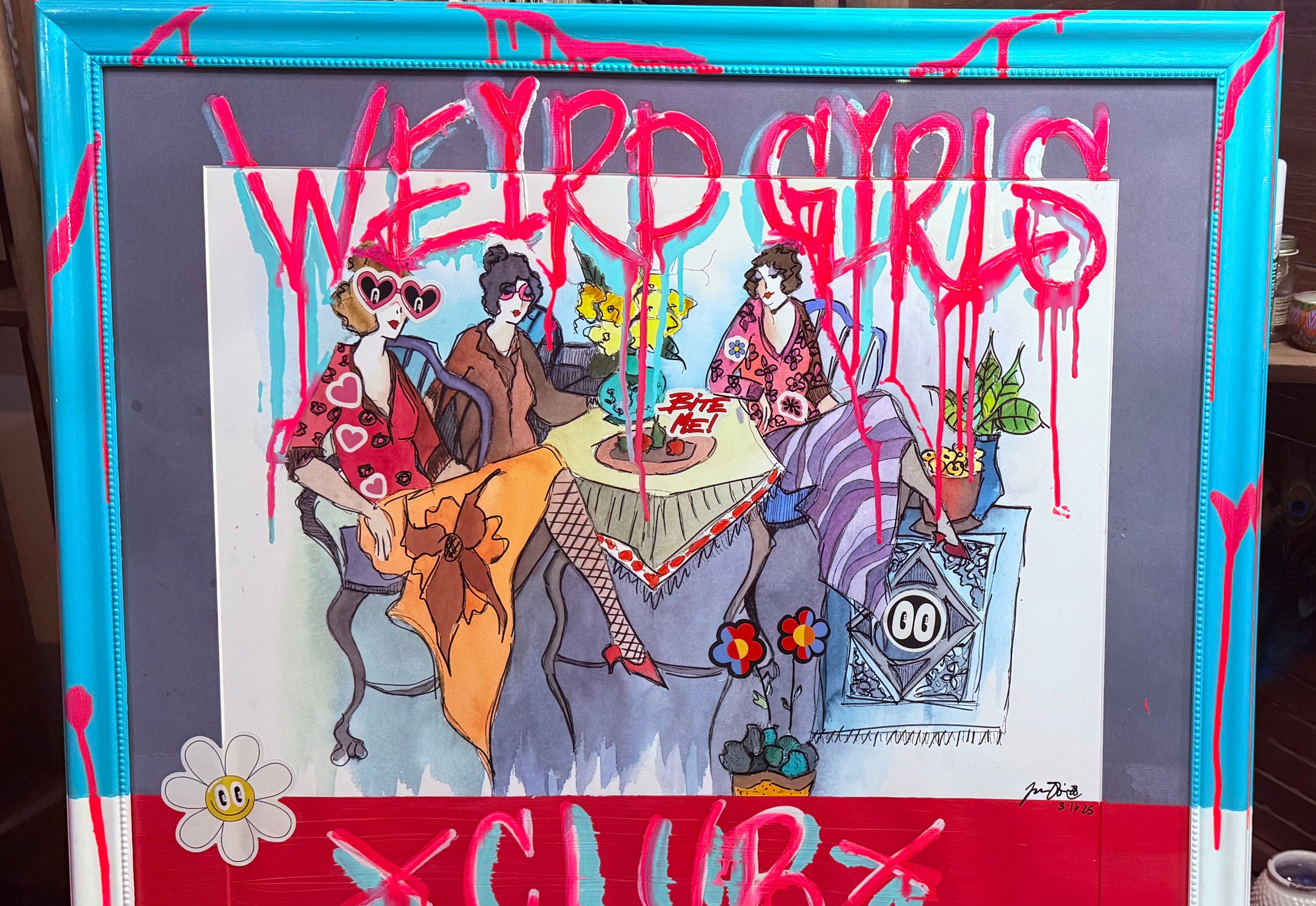 Original work was vintage portrait with acrylic paint, graffiti pens, stickers in an antique frame. Work from this collection sold out at the “Say What?!” Group Exhibit at the Covet Gallery in Oceanside CA.